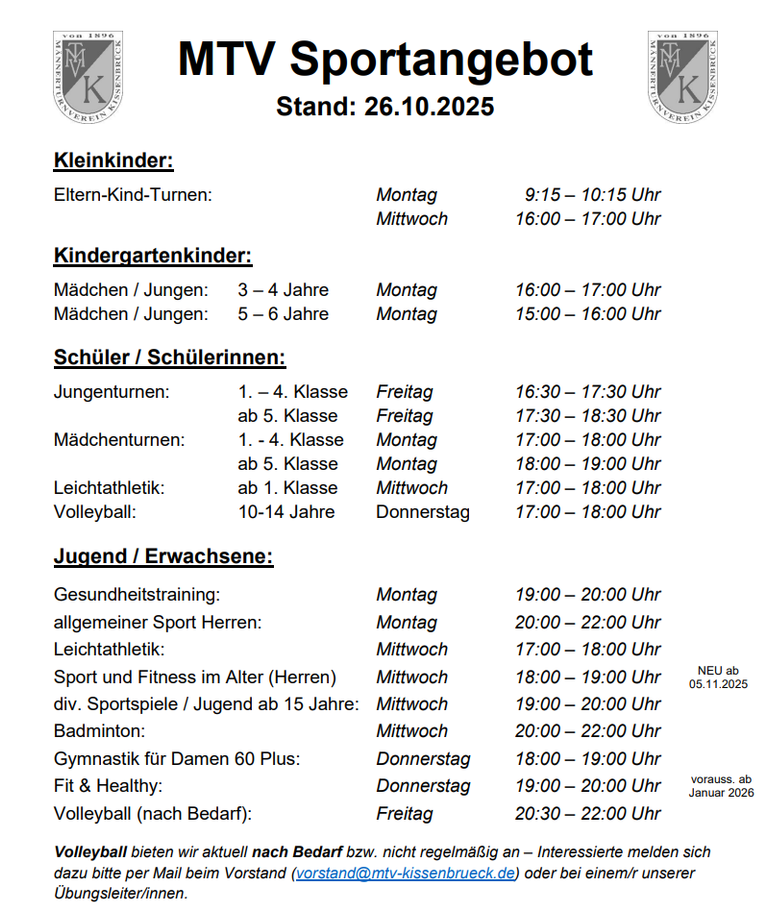 Jeden Mittwoch treffen wir uns in der Turnhalle. Über den Winter werden wir Fitnessübungen durchführen, die uns für das Sportabzeichen 2026 vorbereiten.