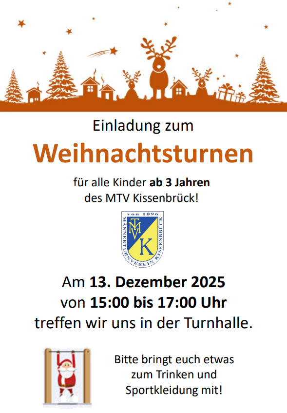 Wir laden alle Kinder ab 3 Jahren zu unserem beliebten alljährlichen Weihnachtsturnen ein.